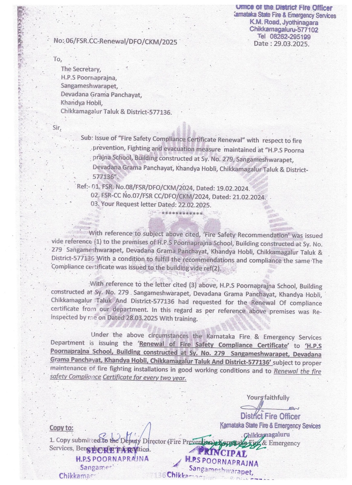 - Issue of “Fire Safety Compliance Certificate Renewal