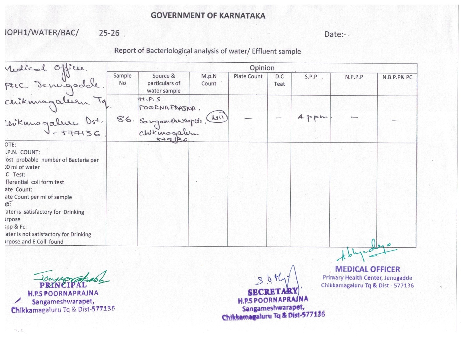 - Report of Bacteriological analysis of water
